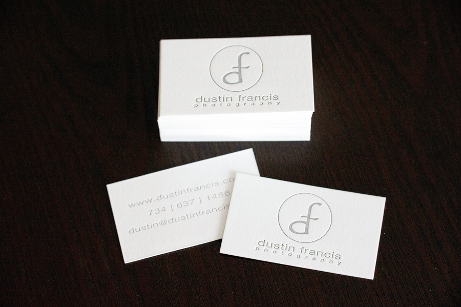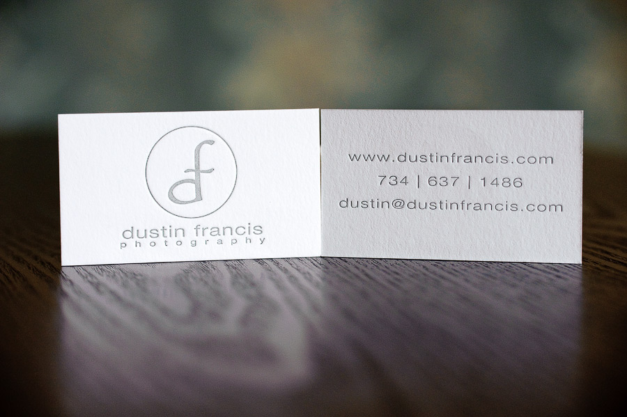 That’s right folks, I picked up my new letterpress business cards yesterday and they are super funky-funky-fresh.  Actually, they are delicate, pretty, and timeless…exactly what I strive for with my branding and imagery.  These beauties were printed by a local letterpress vendor who I can not recommend enough.  Elevated Press is run by a husband and wife team here in Ann Arbor and Michelle and Pete are such kind, easy going people making everything about the process organic and fun.  I really do love giving my money to local businesses and I love it even more when they are as great as Elevated Press!  If you are a bride or groom in need of some gorgeous save-the-dates, invitations, thank you cards, or anything else that is letterpress papery goodness, contact Michelle over at Elevated Press and sit back and wait to be amazed at what she can create for you!